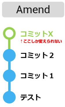 Amendは直前のコミットメッセージを変更することができます。それ以外のコミットメッセージを変更したい場合は、次のRebase(reword)を使います。